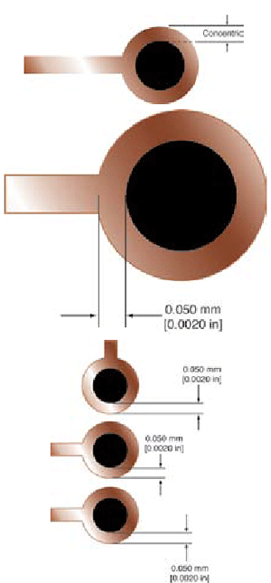 Что допустимо, а что нет? Бoльшая часть рисунков и фотографий, включенных в стандарт IPC-A-600H, отражает три уровня качества для каждой определенной характеристики, а именно: желаемое состояние, допустимое состояние и недопустимое состояние. Текст, сопровождающий каждый уровень, устанавливает «критерий приемки» для каждого класса изделия. Обратите внимание, что выбор класса IPC, 1-го, 2-го или 3-го, может быть осуществлен в рамках обсуждений между потребителем и поставщиком. На рис. 7 показано, насколько важным является расположение просверленного отверстия и что считается допустимым для различных классов IPC. Вывод, сделанный на основе рис. 1 и 2, заключается в том, что эти САПР должны быть подготовлены так, чтобы производитель ПП мог выполнить требования IPC. Стандарт IPC-A-600H содержит правила, касающиеся всех типовых дефектов печатных плат, как это показано на рис. 7–11. Желаемое состояние — классы 1, 2, 3: